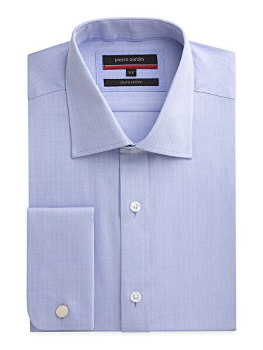Look smart and stylish in our classic Pierre Cardin range. This light blue herringbone weave shirt comes in a regular fit with a cutaway collar and double cuffs for accessorising with cufflinks. A great shirt for a day at the office. Cloth Composition: 100% Cotton